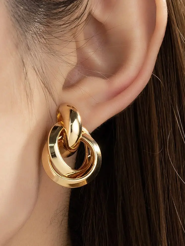 Introducing Orbit Knots loop earring — statement studs that bend the rules of symmetry and space. Designed like intertwined cosmic loops, these earrings are a nod to everything elegant, chaotic, and beautifully bound. Glossed in high-shine gold, they catch the light and the room. Perfect for nights out, power lunches, or when you feel like being the sun in everyone’s orbit.
